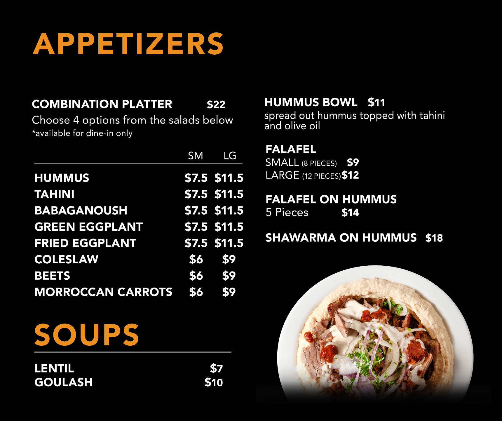 Priding themselves as pioneers in the Thornhill Middle Eastern restaurant scene, the Meron brothers opened doors to their first restaurant in 1998 at Bathurst & Steeles. After much praise and success in various North York locations, they’ve now concentrated their efforts on Meron To Go, a more friendly and express rendition of their eponymous Meron Restaurant. Hailing from Israel, their one goal was to bring a piece of their country to the people of Canada. Striving to replicate tried and true recipes from the homeland, they’re one of the very few establishments to use turkey meat in their renowned shawarma. For a truly authentic Middle Eastern dining experience, visit Meron To Go today!